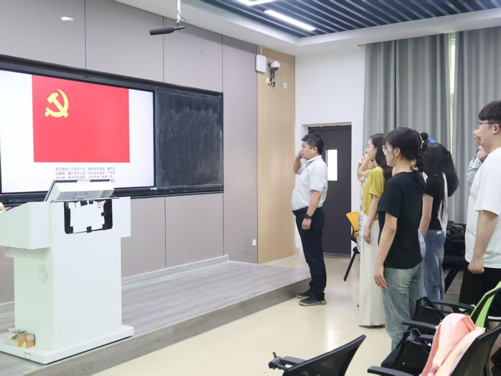 最后,全体党员面向鲜红的党旗,高举右拳,重温入党誓词,进一步强化了党性修养,增强了自身的责任感、荣誉感和使命感。