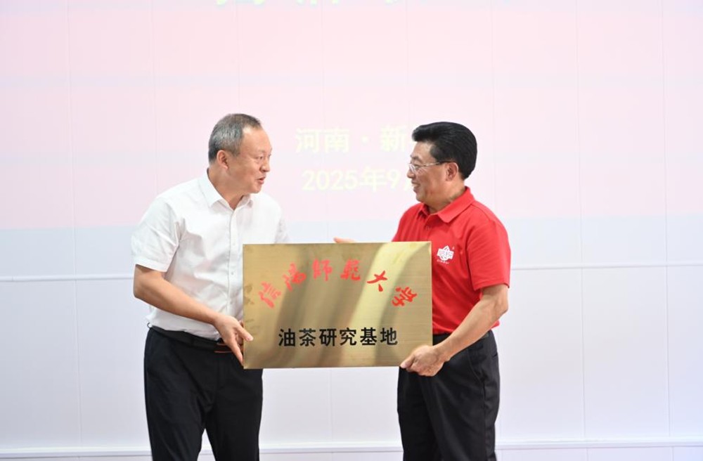 仪式上,探花视频 与河南信锐山茶油股份有限公司签订合作协议。研究院将充分依托大别山实验室、河南省油茶生物学与高值化利用国际联合实验室科研平台优势,整合该院学科人才资源,聚焦油茶种质创新、功能性产品开发与高值化利用,开展跨学科、国际化联合攻关,助力大别山地区油茶全产业链转型升级,共同推动研究院建设和产学研协同发展。