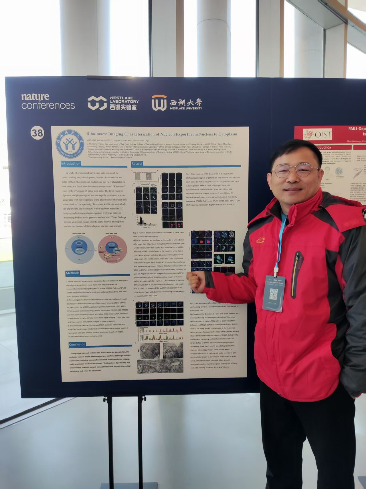 秦克周老师基于自身近期研究成果撰写的学术墙报,经大会组委会严格筛选后成功入选,并在会议现场进行展示。墙报内容聚焦于两种干细胞模型的成像特征,即Primed干细胞向Naïve干细胞转化过程中的“核仁出核”现象的首次发现。该研究工作采用多种成像手段,既体现了扎实的研究基础,也展现了创新的学术思路,吸引了众多参会学者驻足观看、交流探讨。在互动过程中,多位业内知名专家对该研究给予关注,其中一位专家在深入了解研究细节后评价道:“此项工作非常有意思”,高度认可研究的创新性与探索价值。探花视频 秦老师不仅详细介绍了研究背景、方法与成果,同时认真听取同行及专家的意见建议,为后续研究工作的深化与拓展积累了宝贵经验。