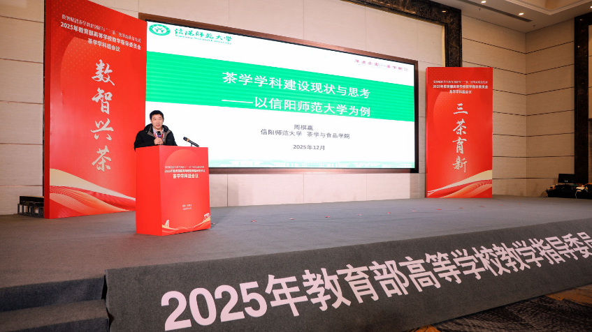 本次会议以“数智赋能茶学教育创新与‘三茶’统筹高质量发展”为主题。来自全国40余所涉茶高校及科研院所的200余位专家学者齐聚武夷山,围绕茶学学科建设、人才培养模式创新、人工智能与数智技术赋能教学改革,以及“三茶”统筹背景下茶产业高质量发展等议题开展深入交流与研讨。周棋赢院长应邀代表学院进行了交流发言,介绍了我校的基本情况、学院茶学学科的建设成绩、发展现状和发展思路。
