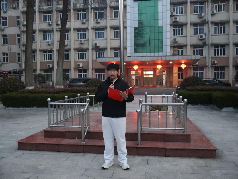 2025级学生代表黄杰深情朗诵《少年中国说》,以“少年智则国智,少年强则国强”的铿锵誓言,赞颂中华少年的责任与担当,抒发了对民族复兴的热切期盼。在国旗下演讲环节,学生代表段宇轩以《笃行致远,不负韶华》为题,号召同学们以坚定步伐开启新学期征程,在小目标中积累成长,在扎实行动中磨砺本领,以平稳心态迎接挑战,奋力书写无愧于时代的青春答卷。