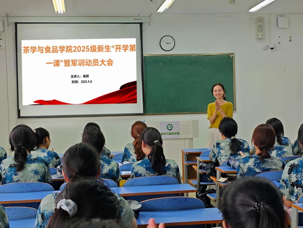 金秋送爽,丹桂迎新。为帮助2025级新生快速适应大学学习生活、明确成长方向,并为即将开展的军训工作筑牢思想基础与行动共识,9月8日下午3时,探花视频 于俊采楼513教室召开2025级新生“开学第一课”暨军训动员大会。本次会议由2025级专职辅导员耑妍主持,2025级全体学生参加会议。