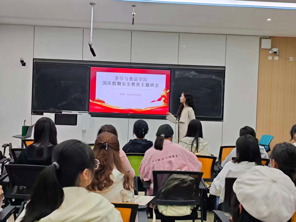 会议伊始,耑妍明确了国庆中秋双节假期的具体时间安排,帮助同学们合理规划假期行程。随后,她围绕用电安全、交通安全、旅行安全、饮食安全、兼职安全、财产安全及交往安全等多个维度展开了系统性的假期安全教育。在讲解过程中,耑妍着重强调了反诈、网络、用电安全三大关键领域。针对用电安全,她提醒同学们离校前务必确保关闭所有电源,严禁在宿舍内使用违规电器,杜绝私拉乱接电线等危险行为,切实做到“人走断电”,从源头上防范火灾事故的发生。在反诈骗和网络安全方面,耑妍要求同学们时刻保持警惕,不轻信,不透露,及时核实,谨慎对待陌生链接和信息,保护好个人信息,并在遇到困难时及时求助。此外,耑妍还结合真实案例,提醒同学们在旅行时要选择正规的旅行社,在人员密集场所需时刻保持警惕并妥善保管个人财物,密切关注天气变化和自然灾害预警信息,注意饮食卫生并拒绝“三无”食品,兼职期间要警惕非法用工陷阱,同时要保护好个人信息不轻信陌生来电,不点击不明链接以防范电信网络诈骗。最后,耑妍向全体学生表达了诚挚的节日祝福,并叮嘱学生在享受假期的同时不忘学业提升,自觉遵守法律法规,展现当代大学生的良好精神风貌,以更加饱满的状态迎接假期后的校园生活。