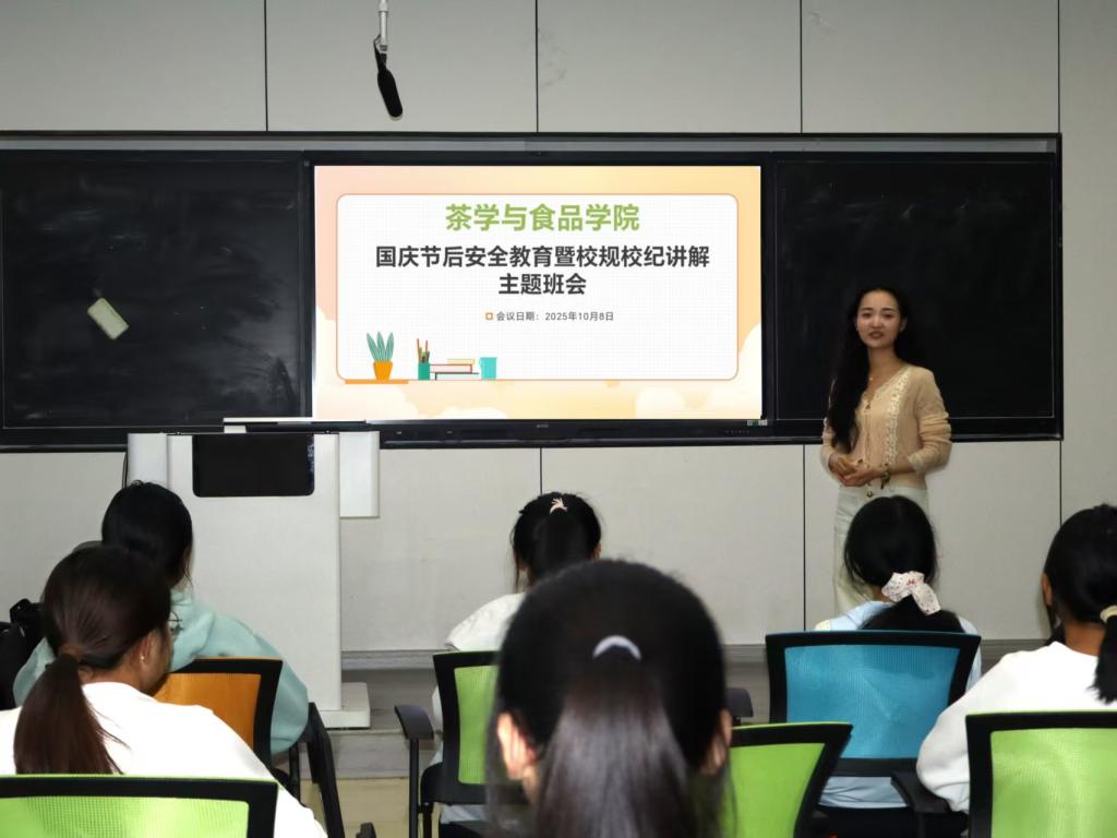 会议上,耑妍聚焦学生返校后的关键议题,围绕学习教育、防骗反诈与校规校纪三个维度展开系统讲解。在学习教育方面,针对部分学生可能存在的情绪波动、作息紊乱与学习动力不足等问题,她提出四项具体措施:一要端正心态,主动调适情绪;二要规律作息,逐步回归常态;三要结合实际,科学制定计划;四要加强锻炼,增强身体素质。在防骗反诈方面,耑妍详细剖析了“刷单返利”“冒充公检法”“虚拟客服”及“校园不良贷”等常见诈骗手段,深入讲解其运作逻辑与识别要点,并重点强调了“三不一多”防护原则与应急处置流程,切实增强学生识别与应对诈骗的能力。在校规校纪方面,她结合《高等学校学生行为准则》与学校管理制度,对课堂纪律、请销假制度、宿舍管理、考试诚信等要求和综合测评办法进行了重点阐释,通过案例分析引导学生树立规矩意识、恪守行为规范。最后,耑妍勉励同学们以自律精神投入学业,以规范行动保障成长,为个人全面发展奠定坚实基础。