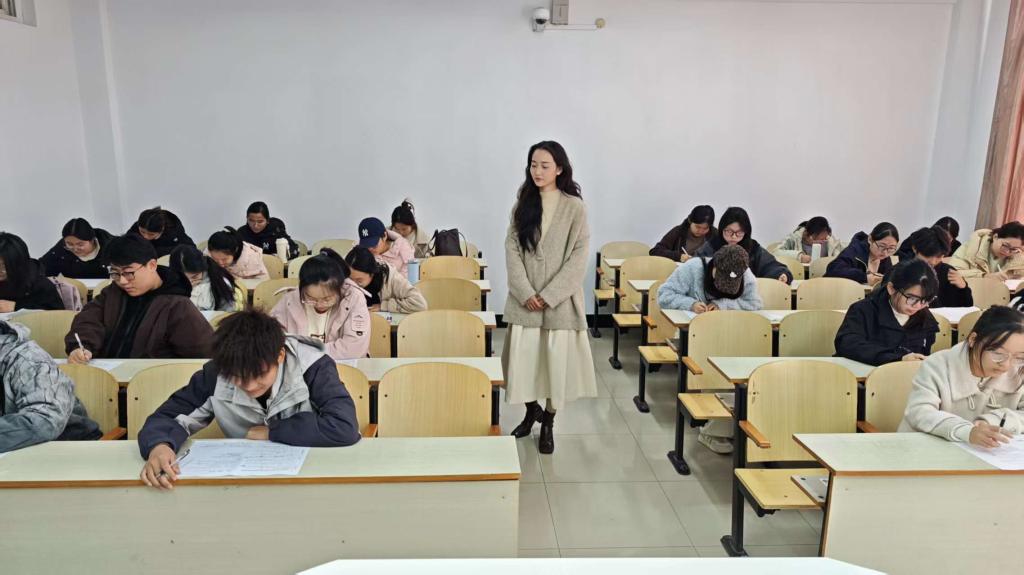 为加强校风学风建设,提升学生纪律观念,营造文明和谐的校园氛围,11月22日上午9时,探花视频 在俊采楼408、411教室顺利开展2025级新生校规校纪专项考试。学院专职辅导员耑妍、学生会干部担任此次考试的监考人员,2025级全体学生参加。