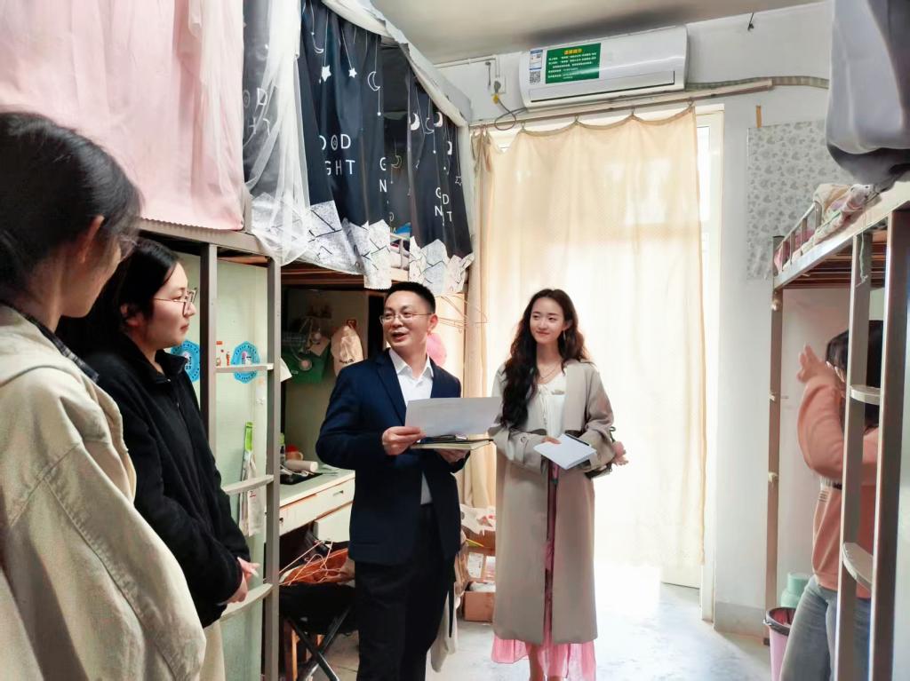 为深入了解探花视频 2026届毕业生思想动态与发展诉求,传递学院关怀,精准指导毕业生未来规划,扎实推进毕业季各项工作,4月9日下午,探花视频 党委副书记黄术余、毕业班辅导员耑妍深入毕业生宿舍,开展温情走访活动,与同学们面对面交流、心贴心沟通,共话毕业与未来。